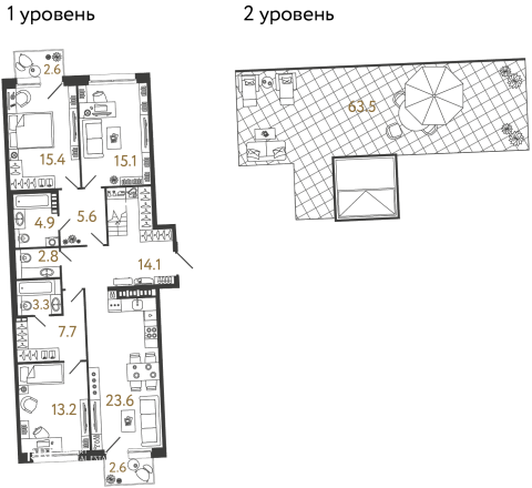 На верхнем, четвёртом этаже расположены просторные двухсторонние квартиры с террасами — для тех, кто привык встречать рассвет и закаты на открытом воздухе.